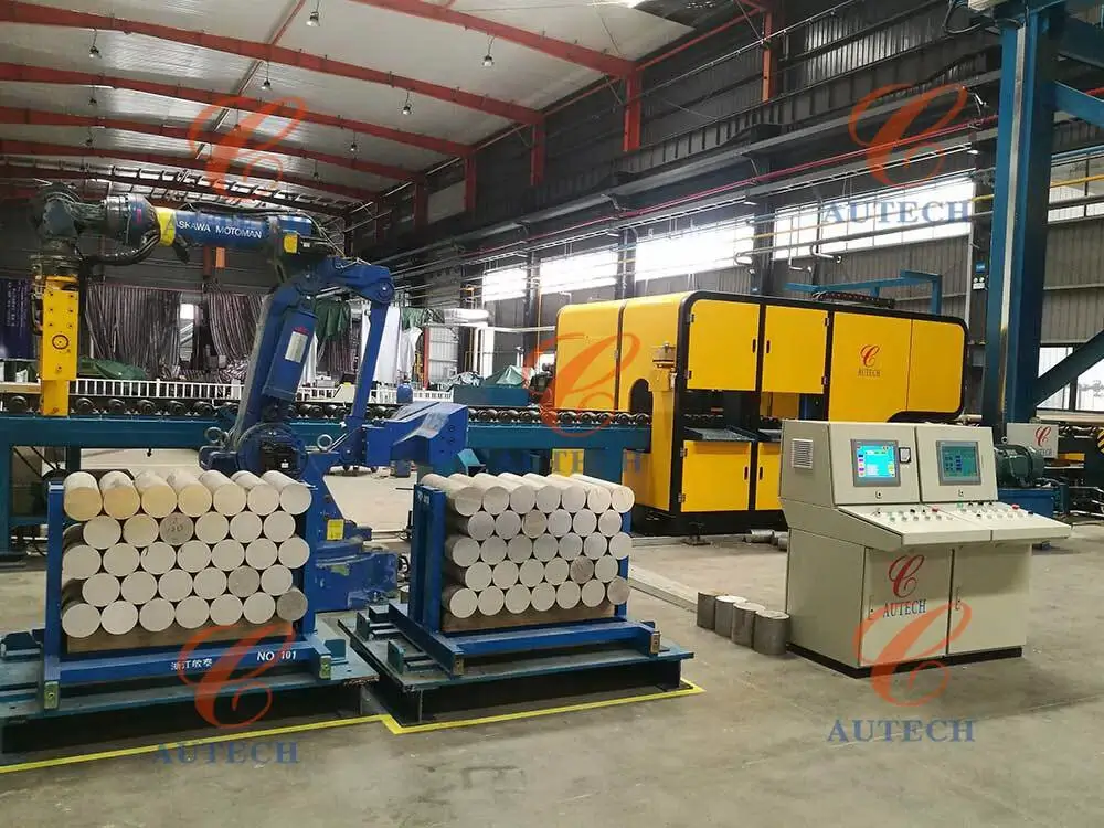1. Automatic Aluminum billet Feeding and Positioning: Aluminum billets are automatically fed, centered, and clamped to ensure cutting stability.